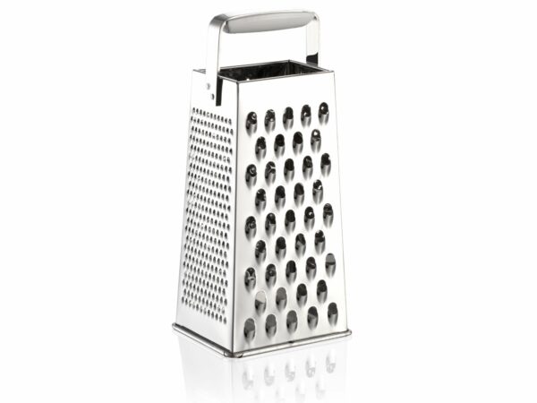Ideal für Gurken, Kartoffeln, Karotten und vieles mehr – die Vierkantreibe von Leifheit. Wer diesen Küchenhelfer kauft, der erhält ein wahres Allround-Talent. Denn er vereint Reiben, Raspeln und Hobeln in einem Gerät. Somit eignet er sich perfekt zum Zerkleinern von Käse, Obst und Gemüse jeglicher Art. An den vier Seiten der Vierkantreibe von Leifheit befinden sich verschiedene Flächen, um das Schneidgut auf unterschiedliche Weise zu Zerkleinern. Das Gerät verfügt über einen scharfen Scheibenschneider, Kroneneinsatz sowie eine feine und grobe Reibfläche. Zur Reinigung darf die hochwertige Küchenreibe selbstverständlich in die Spülmaschine. Dort wird sie im Handumdrehen wieder sauber.