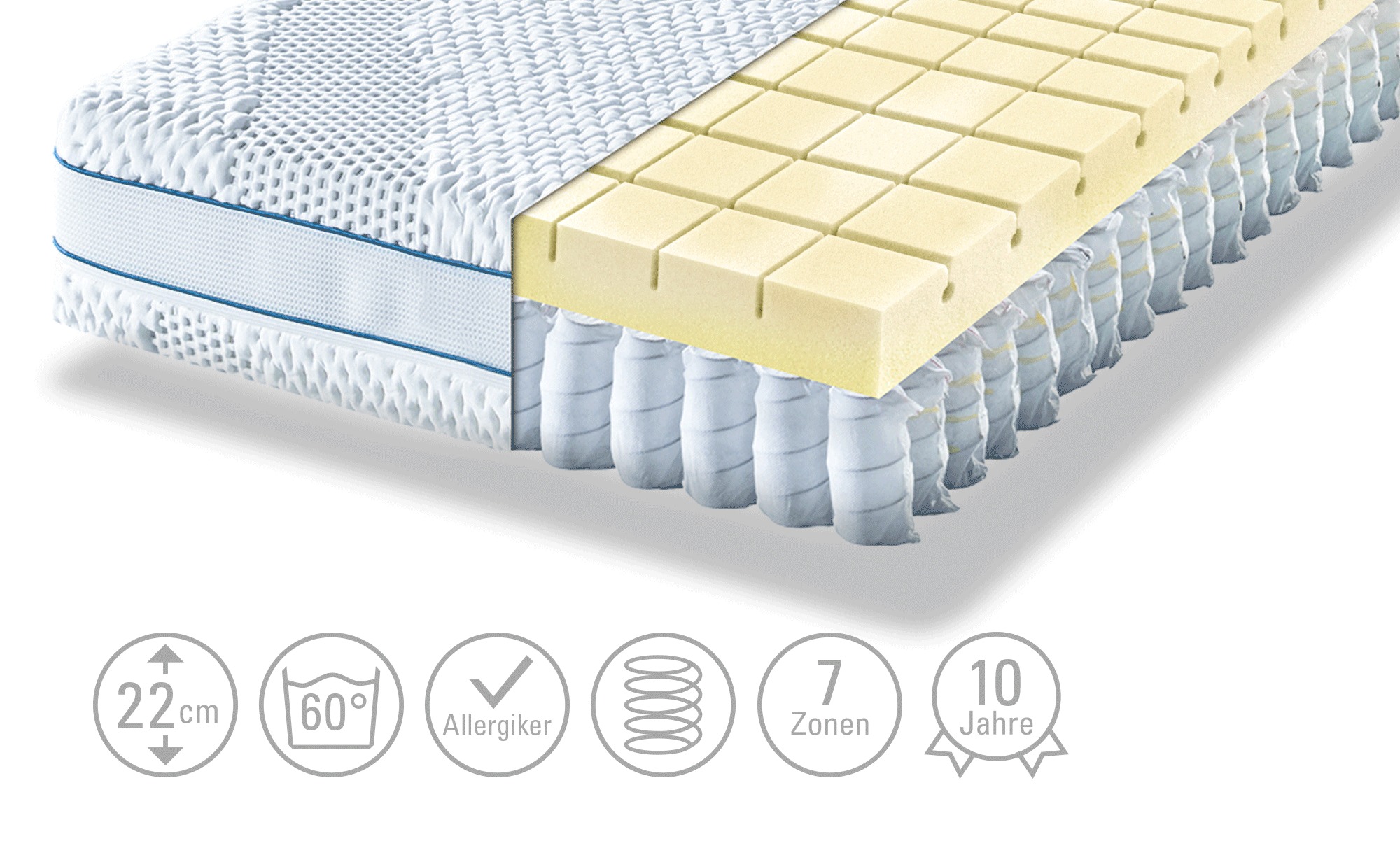 Unser Produkt Möve Tonnentaschenfederkern – Matratze Aqua Top T gibt es in den Farben: weiß Der Hersteller Möve ist bekannt für die hohe Qualität der verwendeten Materialien. · Prüfsiegel: Öko-Tex Standard 100 · Aktion: Newsletter-Anmeldung 10€ Willkommens-Gutschein. · Aktion: 3% Kundenkarten-Rabatt. · Der Artikel befindet sich in der Höffner-Kategorie: Matratzen & Zubehör – Matratzen-Arten – Federkern-Matratzen.